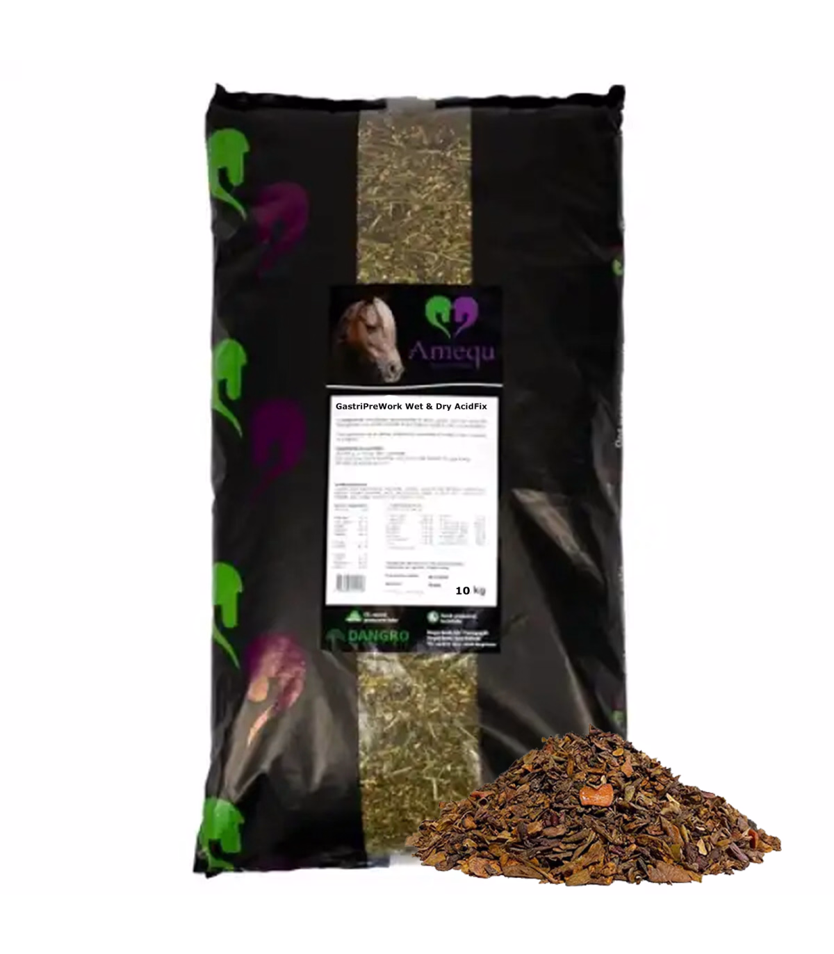 Amequ GastriPreWork AcidFix er et fiberbaseret "før ridning" tilskud til heste, der støtter maven og fordøjelsen. Produktet danner et beskyttende flydelag i mavesækken og kan anvendes til alle heste – især heste med sensitiv fordøjelse eller nøjsomme spisere.