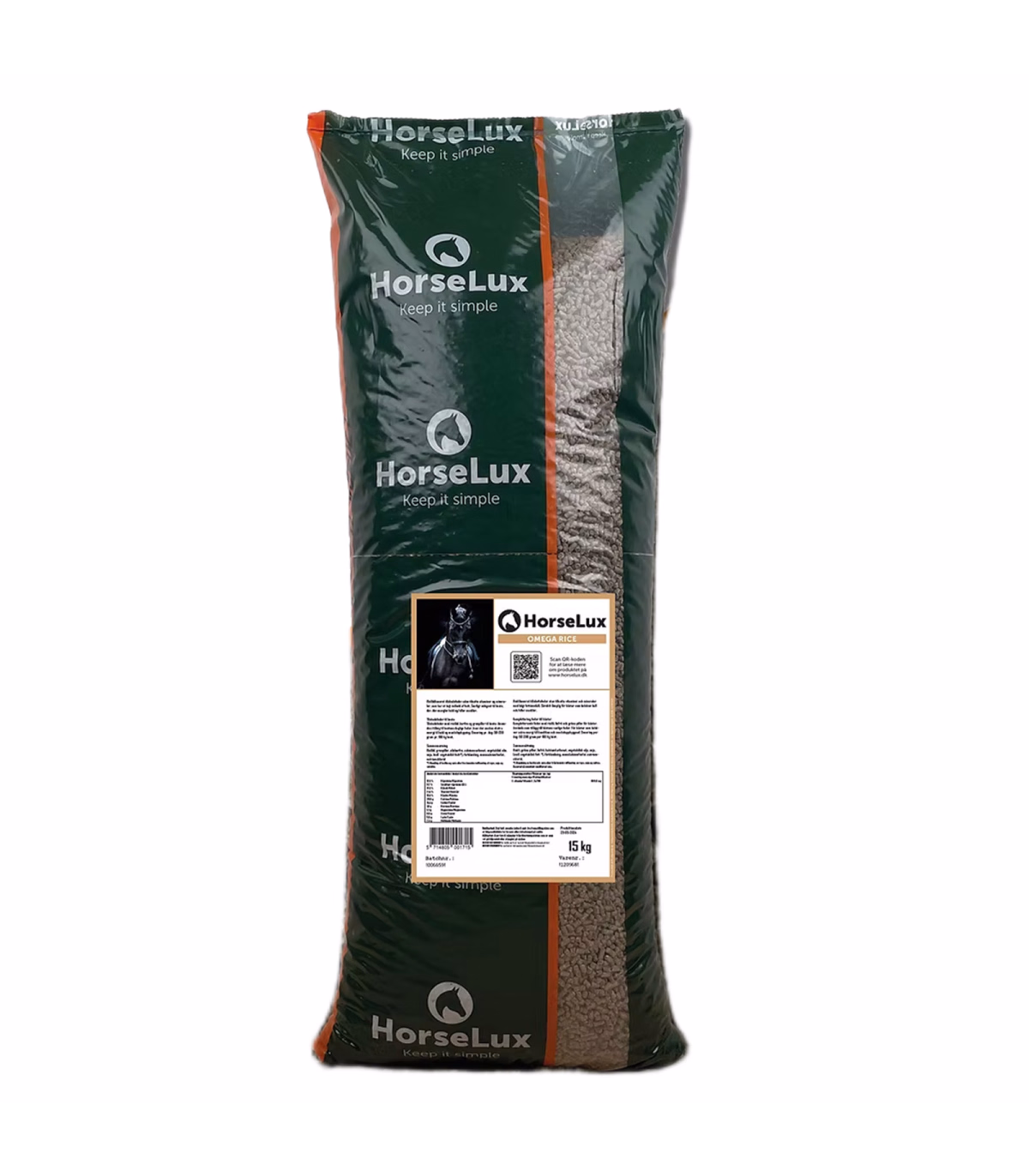 HorseLux Omega Rice er specielt designet til heste, der har svært ved at holde vægten, eller som har brug for ekstra energi. Det er også et godt valg til ældre heste, som har nedsat fordøjelse af fibre, men som stadig kan optage fedt effektivt.
