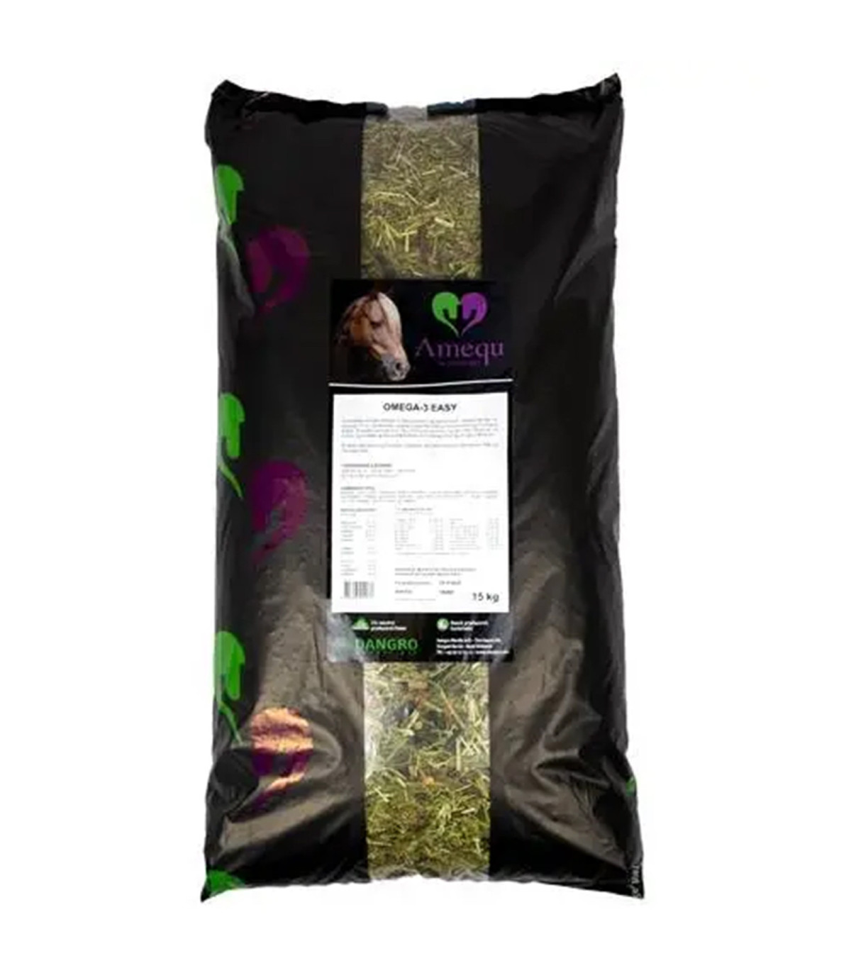Amequ Omega-3 Easy er et foder, som er velegnet til heste med behov for ekstra Omega-3 fedtsyrer. Foderet er uden korn og lavt på stivelse, men højt på omega-3 fra hørfrø og rapsolie. Amequ Omega-3 Easy bidrager til en sund hud, pels, led og immunforsvar hos din hest.