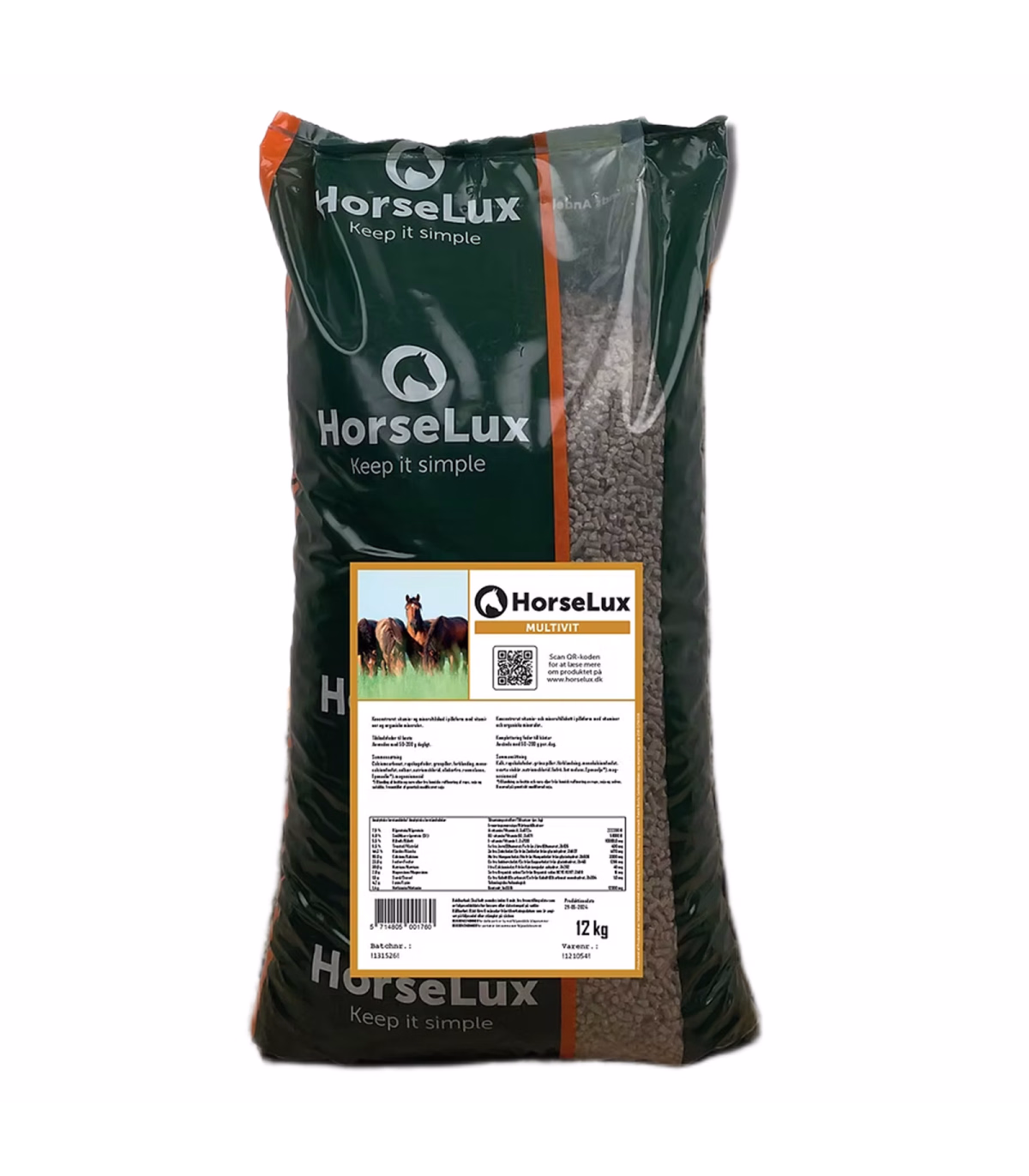HorseLux MultiVit er et tilskudsfoder til heste, som giver dem de nødvendige vitaminer og mineraler i en letfordøjelig form.