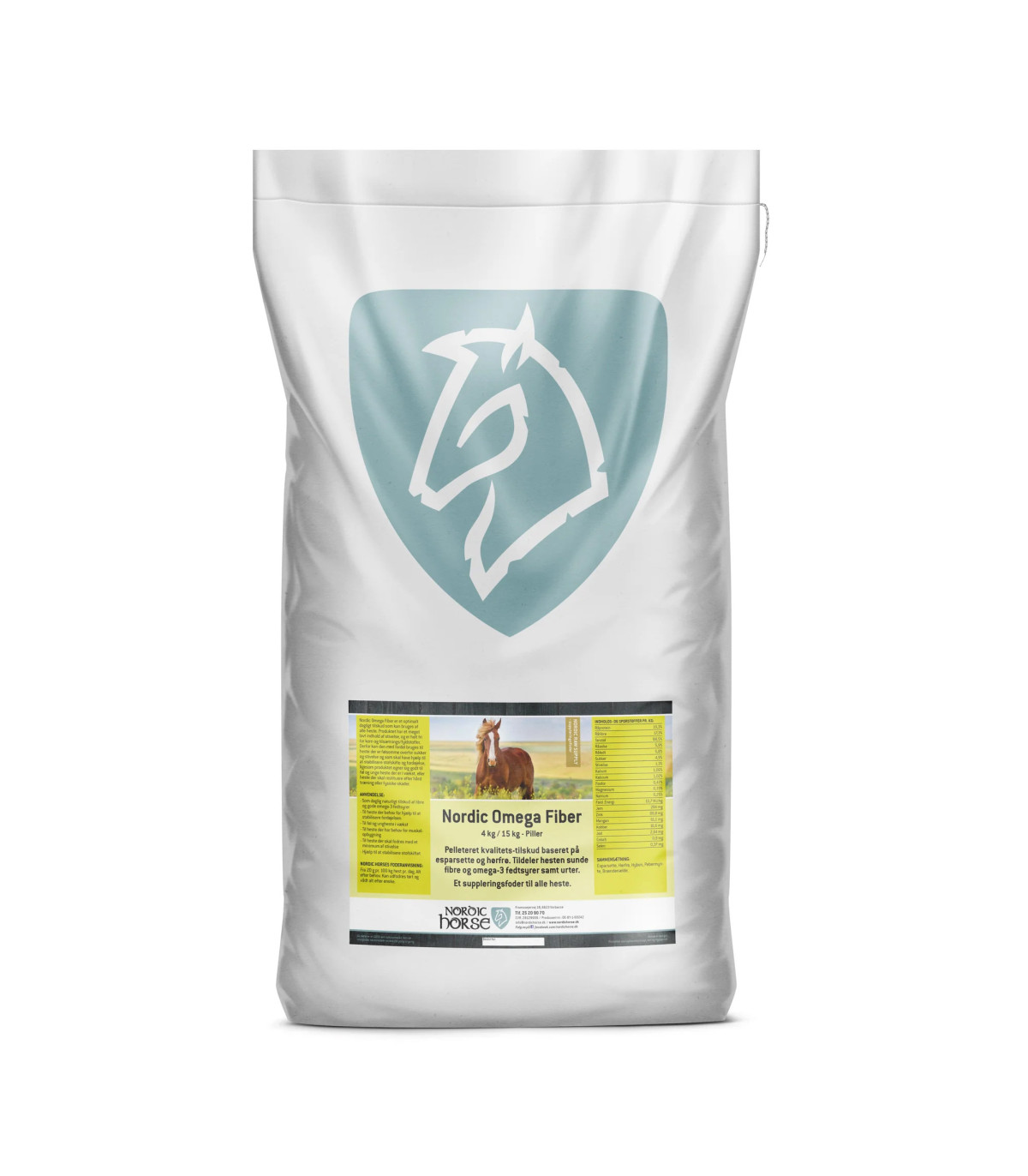 Nordic Omega Fiber er et pelleteret tilskudsfoder, der kombinerer langkædede fibre, let optagelige proteiner og naturlige omega-3 fedtsyrer i én enkel sammensætning. Produktet består af esparsette og brune hørfrø i forholdet 1:1, suppleret med hyben, brændenælde og pebermynte, som sikrer en stabil pelletering og friskhed.