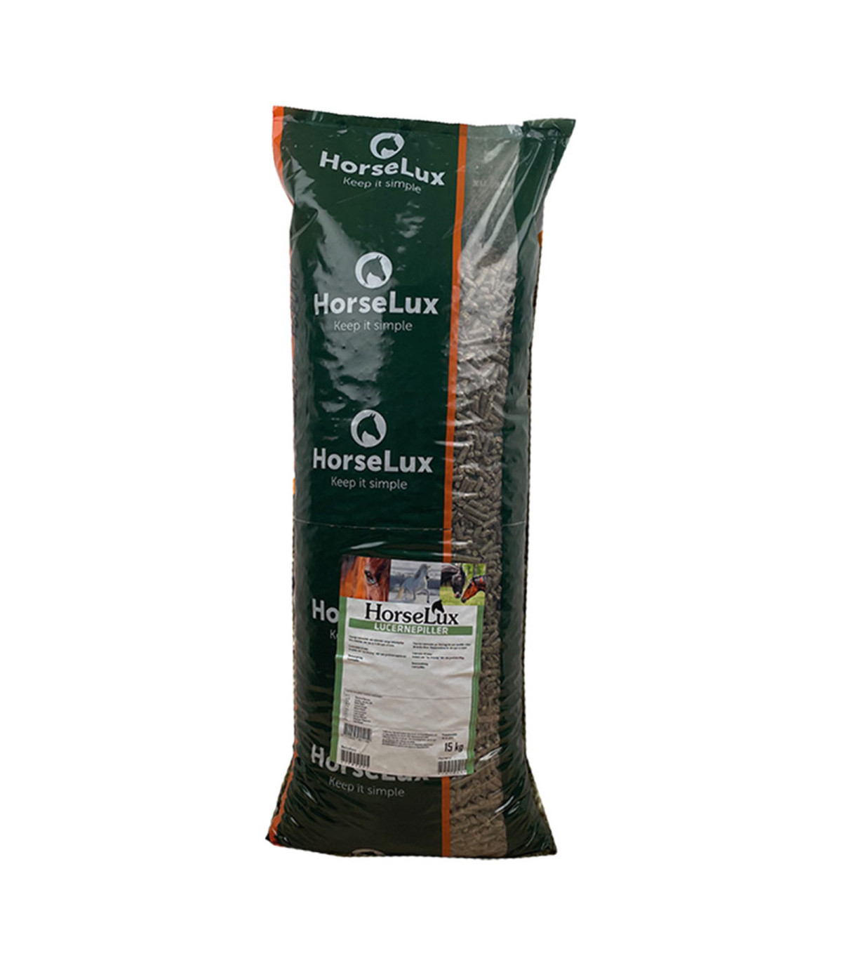 HorseLux lucernepiller er et højkvalitet lucernetilskud til din hest eller pony. Lucernepillerne har mange fordøjelige fibre, som gavner din hests tarmfunktion og mavefornemmelse. Lucerne har også mange aminosyrer, som er vigtige for musklerne. Hvis du har en nøjsom hest, kan lucerne hjælpe den med at få en flot og stærk muskulatur.