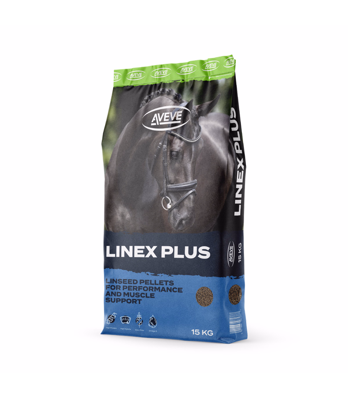 Aveve Linex Plus er et kornfrit kvalitetsfoder udviklet til at give hesten stabil energi, sund fordøjelse og optimal præstation. Med højt indhold af ekstruderet hørfrø og omega-3-fedtsyrer bidrager det til en skinnende pels, god kropskondition og langsom energifrigivelse. Beriget med E-vitamin, organisk selen og præbiotisk inulin understøtter foderet både muskelrestitution og en sund tarmflora. Ideelt til heste med sensitiv fordøjelse og behov for udholdenhed og stabilt energiniveau.