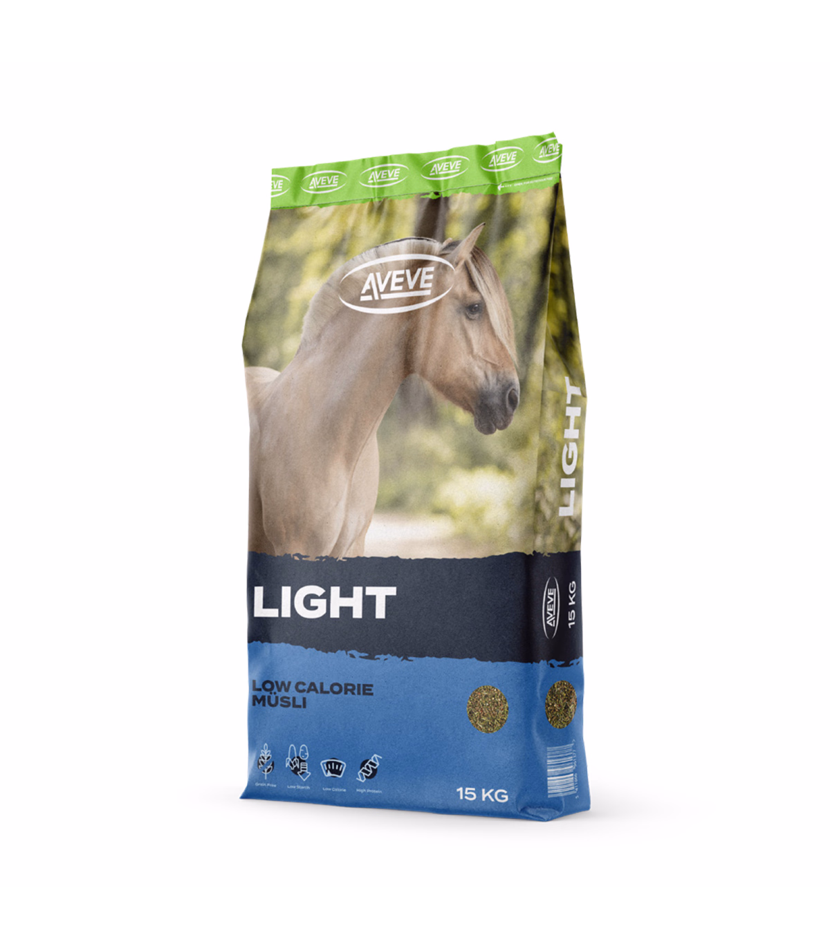 Aveve Light er et strukturrigt og kornfrit foder, der er udviklet til heste og ponyer med et lavt energibehov. Med sit meget lave indhold af sukker, stivelse og kalorier er det et oplagt valg til nøjsomme heste, der skal holdes i god form uden at få for meget energi.