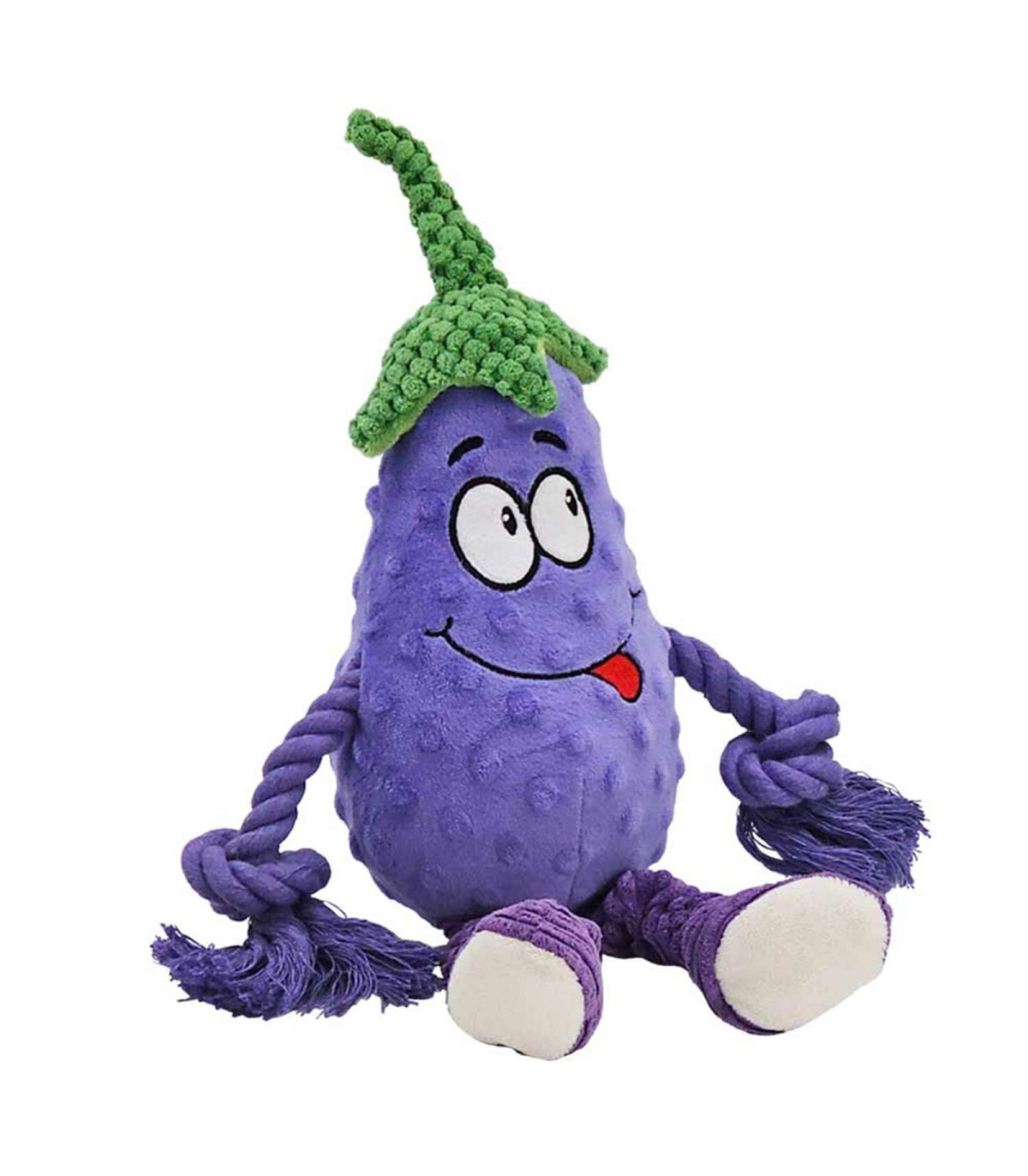 Plys Aubergine med reb – legetøj til mellestore hunde. Blødt plys med indbygget pivelyd og kraftigt reb gør dette legetøj ideelt til leg og aktivering for mellestore hunde.