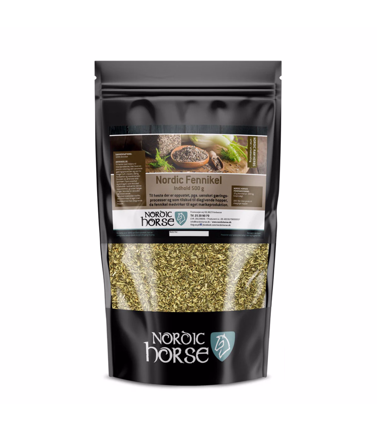 Nordic Fennikel er et naturligt tilskud til heste, der oplever luft i maven eller nedsat appetit. De æteriske olier i fennikel, primært trans-anethol og estragol, hjælper med at reducere oppustethed forårsaget af uønskede gæringsprocesser. Samtidig stimulerer fennikel naturligt mælkeproduktionen hos diegivende hopper – særligt i de første dage efter foling.