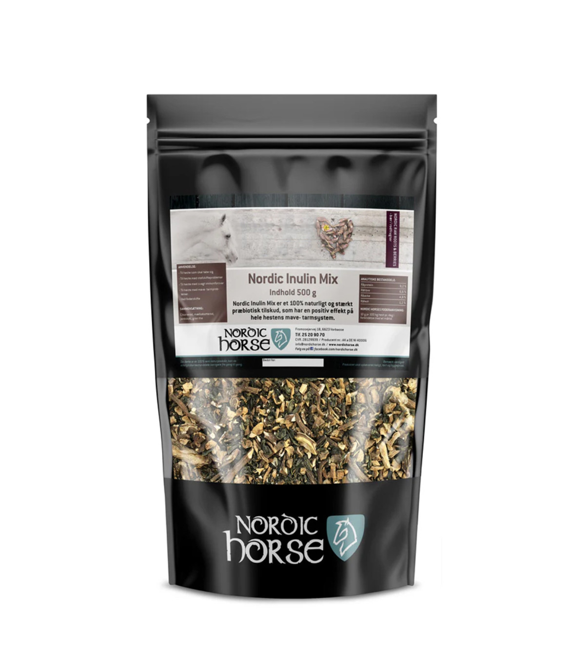 Nordic Inulin Mix er et 100% naturligt, stærkt præbiotisk tilskud, der støtter hele hestens mave- og tarmsystem samt hjælper med at regulere stofskifte og hormonbalance.