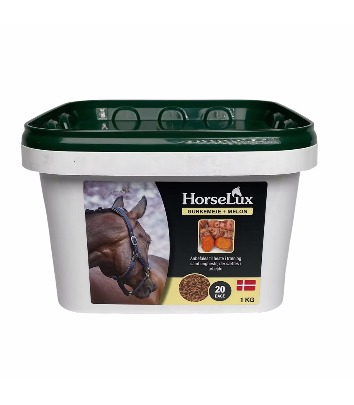 HorseLux Gurkemeje + Melon er et naturligt og effektivt tilskud til din hest.