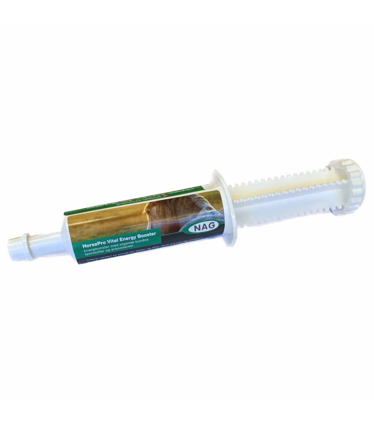 HorsePro Vital Energy Boost er et tilskudsfoder til heste, designet til at øge energiniveauet før og efter intensiv træning eller transport. Det indeholder organiske sporstoffer, antioxidanter og druesukker.
