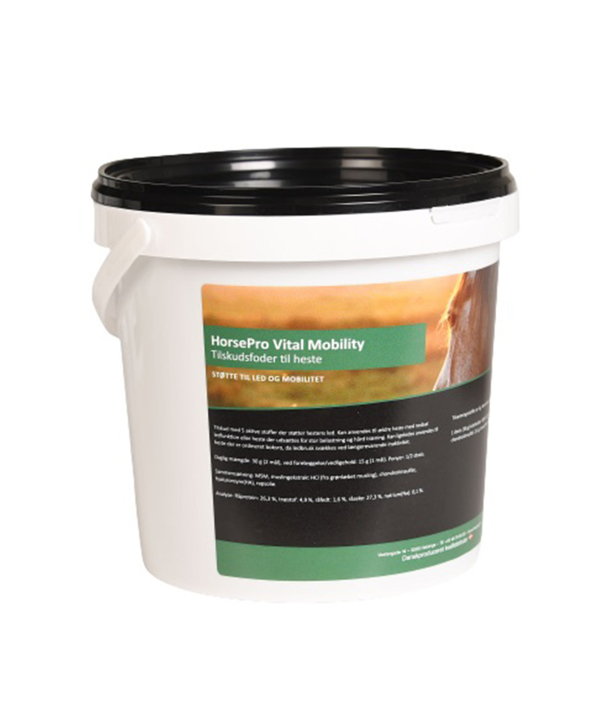 HorsePro Vital Mobility er et tilskudsfoder til heste, der styrker led og mobilitet. Produktet indeholder fem aktive ingredienser, der støtter hestens led funktion. Det er ideelt til ældre heste med nedsat led funktion og til heste under intens træning. Det kan også anvendes til heste, der skal stå i boks i længere tid, da inaktivitet kan svække led brusken.