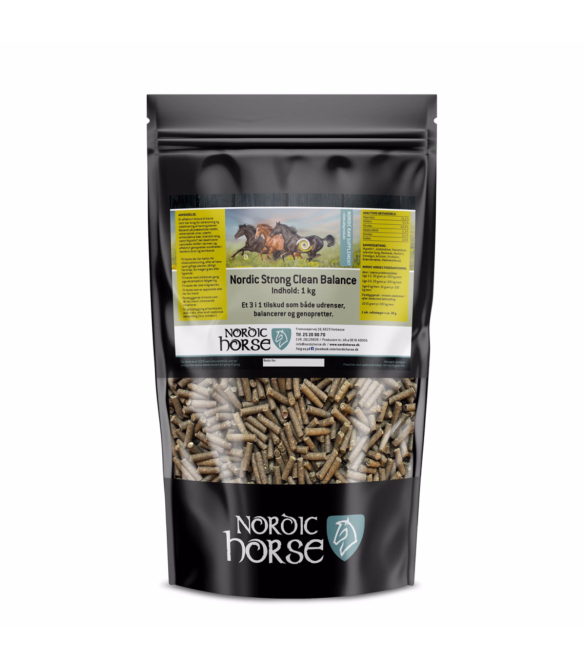 Nordic Strong Clean Balance er et tilskud til heste med behov for udrensning og stabilisering af tarmsystemet. Produktet er sammensat af præbiotiske rødder, udrensende urter, bær med højt indhold af antioxidanter, islandsk tang samt Mycofix®, der bidrager til at deaktiverer uønskede stoffer i tarmen og understøtter lever- og tarmfunktion.