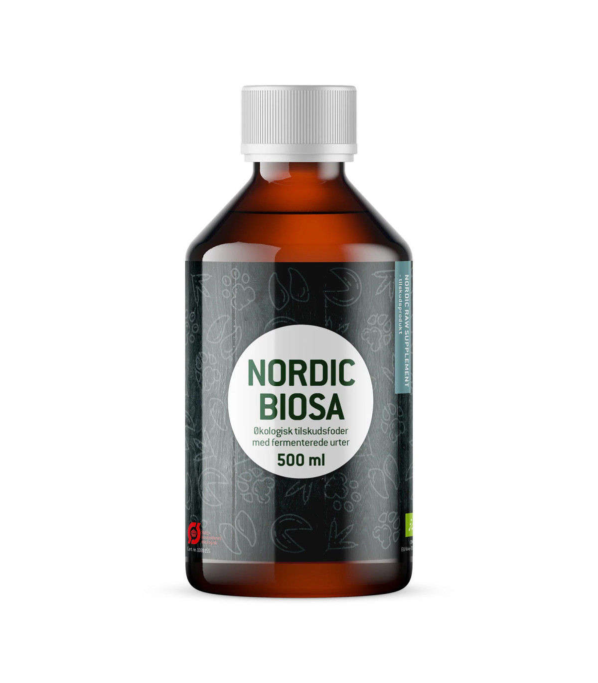 Nordic Animal Biosa er et flydende, økologisk produkt baseret på mikrobielt fermenterede urter. Det understøtter en sund fordøjelse ved at skabe balance i tarmens mikroflora og styrke slimhinden i mave og tarm.